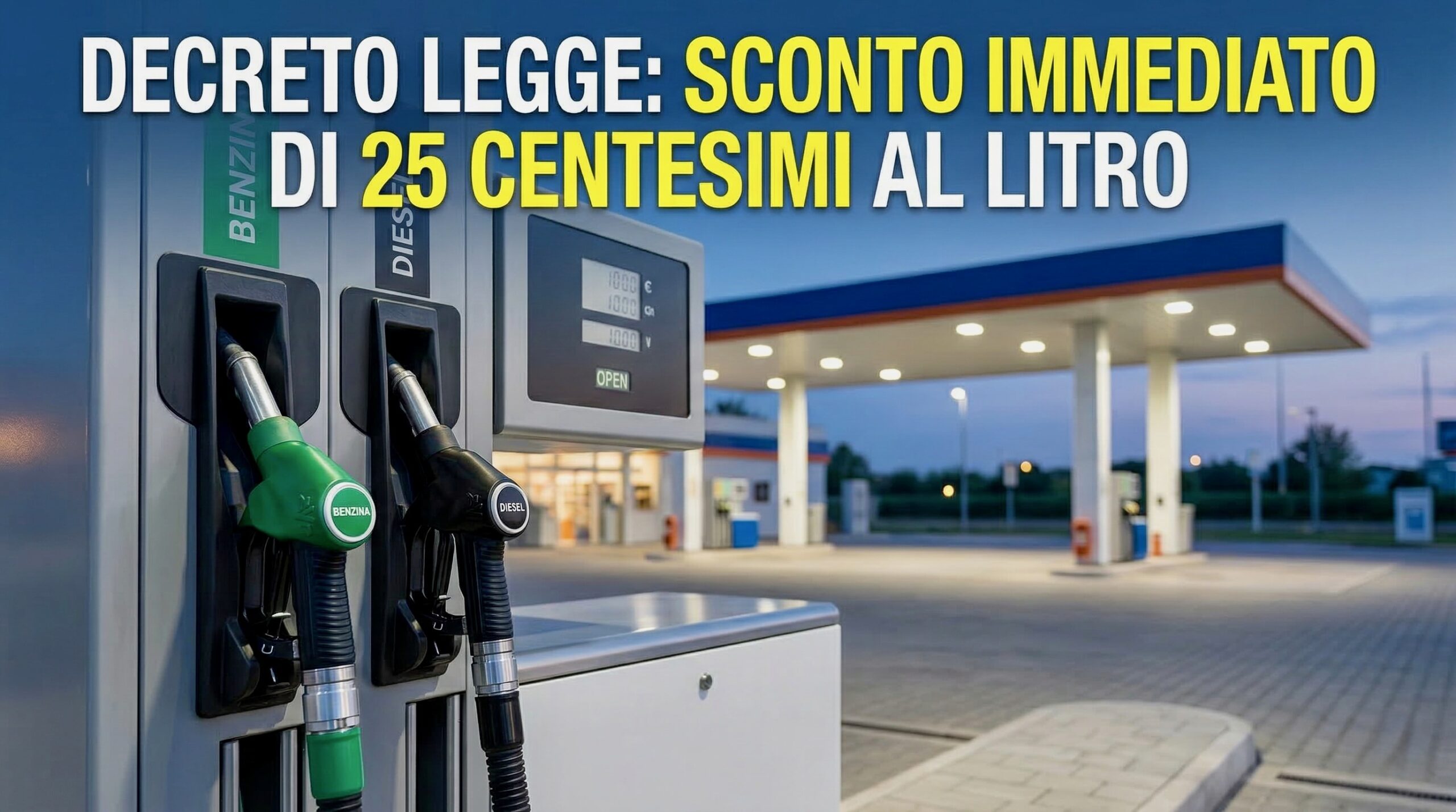 Decreto carburanti: scatta lo sconto di 25 centesimi su benzina e diesel