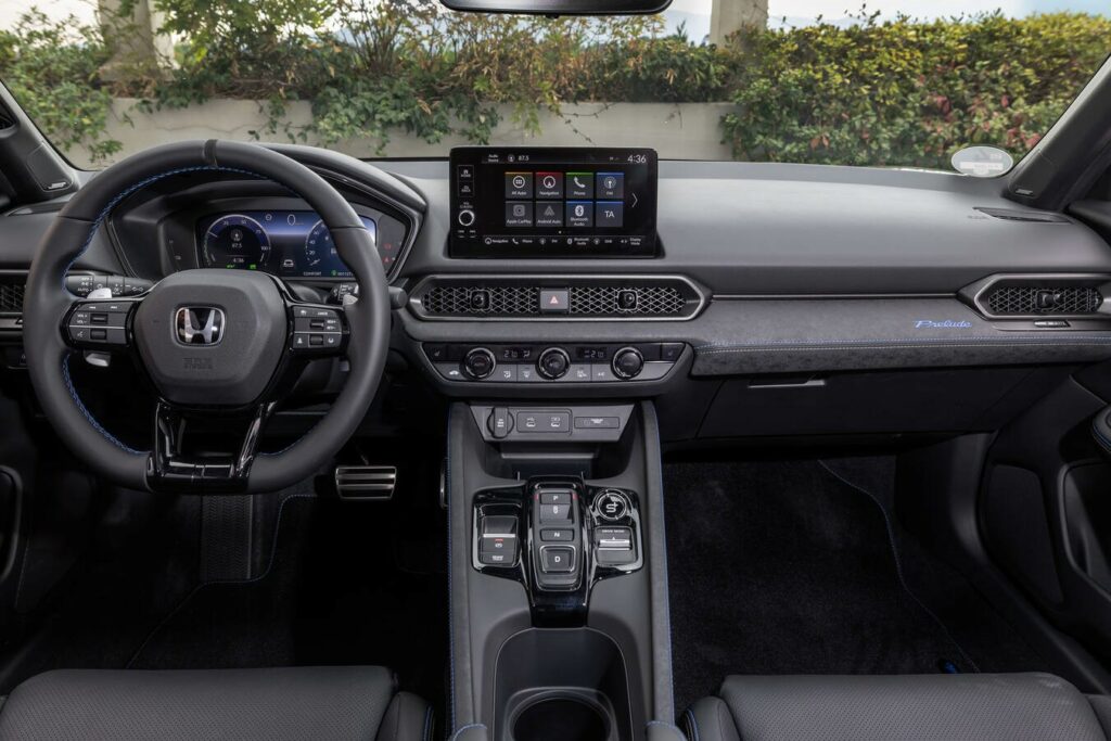 All’interno, la Prelude offre una configurazione a quattro posti (2+2). Il design della plancia è orizzontale, pensato per massimizzare la sensazione di spazio e la visibilità. La strumentazione è affidata a un quadro digitale da 10,2 pollicipersonalizzabile, che cambia grafica in base alla modalità di guida. Il sistema di infotainment centrale utilizza uno schermo da 9 pollici e supporta Apple CarPlay (wireless) e Android Auto. L’impianto audio di serie è un sistema Bose a otto altoparlanti.