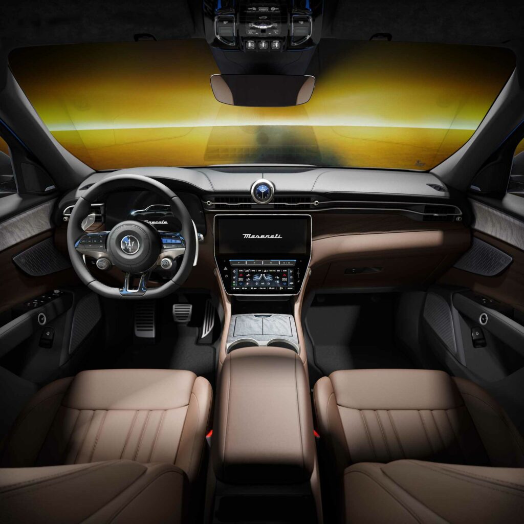 Per creare un contrasto visivo netto, i designer Maserati hanno optato per l’inserimento di dettagli in giallo. Questa scelta cromatica interessa specifici elementi esterni: