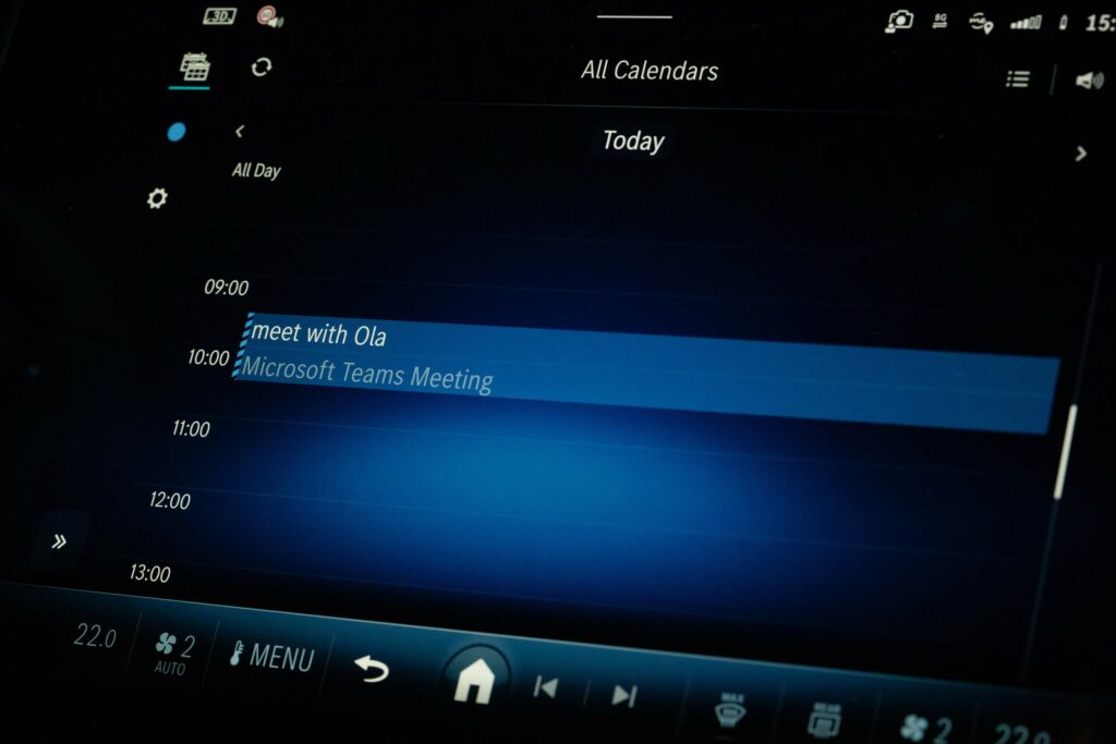 La novità tecnica più rilevante è l’introduzione di un login unificato: con un unico accesso, il sistema sincronizza non solo il calendario, ma anche le note (MBUX Notes) e, prossimamente, le piattaforme di meeting. Questa centralizzazione permette di gestire più flussi di lavoro senza dover autenticare ogni servizio separatamente.