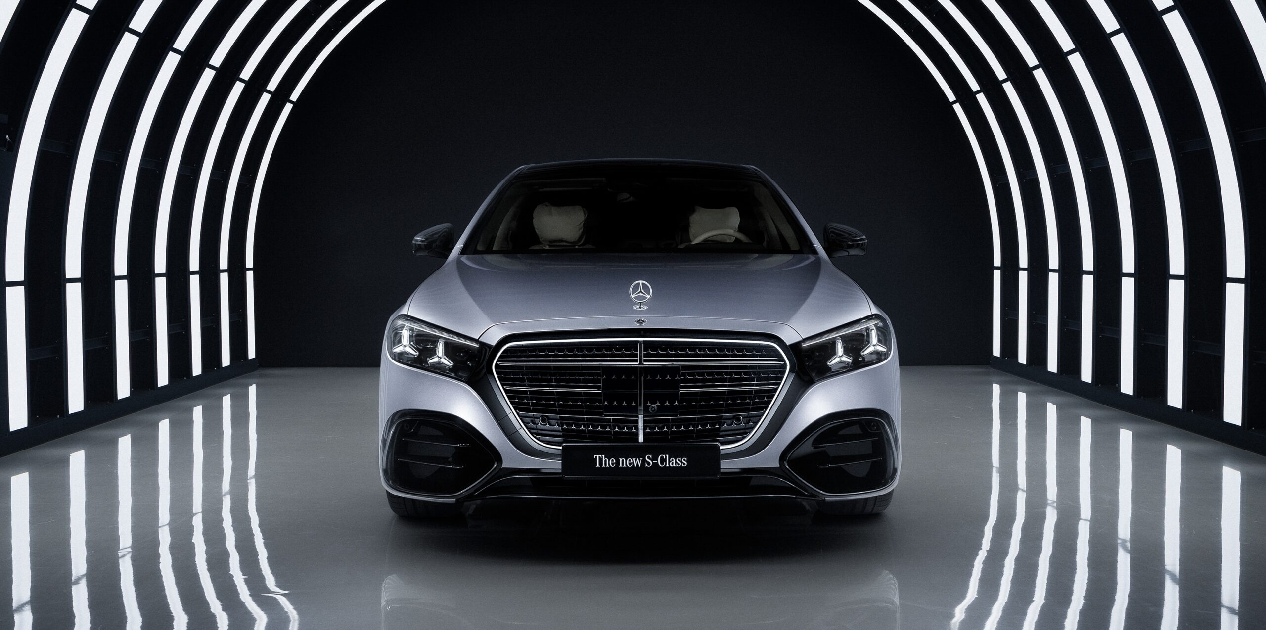 Anche il posteriore è stato ridisegnato: i nuovi fanali presentano una grafica interna con tre stelle cromate, incorniciate da finiture in nero lucido che sottolineano la larghezza della vettura. Un tocco di benvenuto esclusivo è offerto dal proiettore integrato nelle soglie laterali, che proietta la scritta “Mercedes-Benz” a terra all’apertura delle portiere.