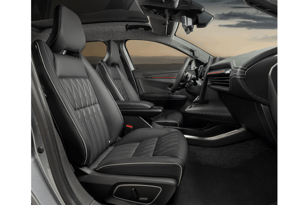 Dentro, l’impostazione “Sporty and Modern” privilegia orizzontalità e pulizia formale. Le finiture in argento satinato corrono lungo la plancia e i pannelli porta, amplificando la sensazione di ampiezza. L’auto offre due file di sedili e cinque posti con attenzione a sostegno e comfort: le sedute propongono cuciture a rombi e imbottiture riviste. L’atmosfera è personalizzabile tramite illuminazione ambientale fino a 48 colori (in base all’allestimento), capace anche di adattarsi alla modalità di guida selezionata. Il tetto panoramico in vetro con funzione elettrocromica consente di passare rapidamente da trasparente a oscurato; sono disponibili preset che permettono di gestire separatamente le zone anteriore e posteriore per modulare luce e calore nell’abitacolo.