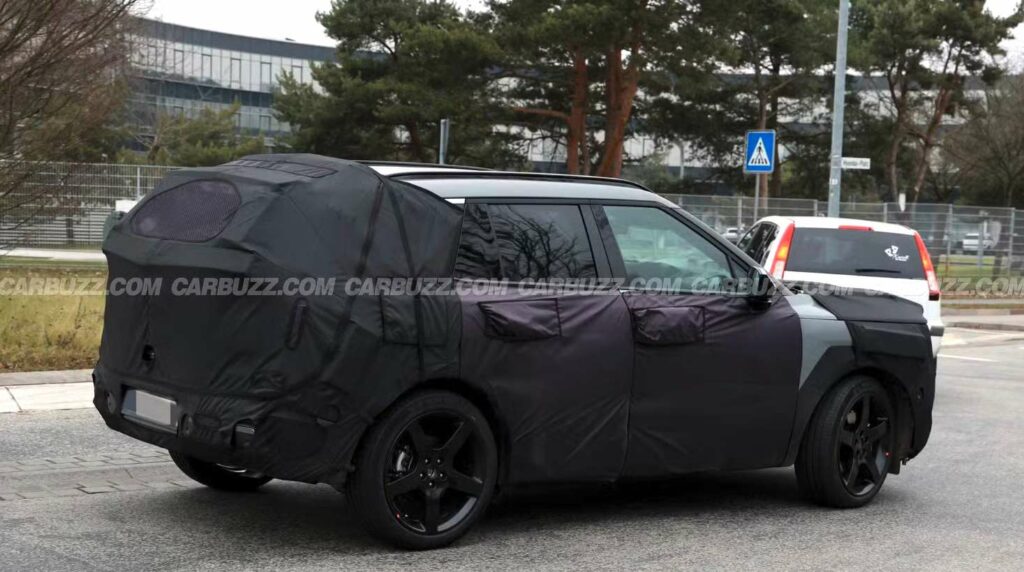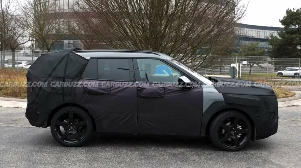Anche i dettagli laterali confermano questa parentela. I passaruota, visibili attraverso le aperture del camuffamento, abbandonano il classico semicerchio per adottare una forma esagonale. Pur non essendo sporgenti e muscolosi come sulla Santa Fe, ne richiamano la filosofia robusta. Un altro dettaglio tecnico interessante riguarda la vetratura anteriore: le nuove portiere presentano angoli così vivi da aver costretto i designer a inserire un piccolo deflettore fisso nell’angolo del finestrino, un elemento che ricorda le soluzioni vintage degli anni ’70 ma in chiave moderna.