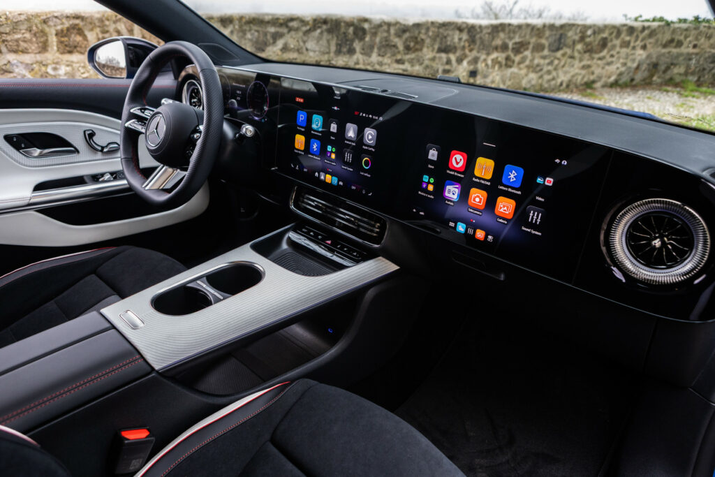 Abbiamo testato la versione 220 4Matic a trazione integrale. Dinamicamente, la CLA sorprende: l’assetto segna un nuovo standard per Mercedes. Abbandonata la classica sensazione “galleggiante”, l’auto risulta più rigida, comunicativa e invoglia a pennellare le curve, coadiuvata da uno sterzo preciso ed eccellente, ereditato dalla variante a zero emissioni. Il peso, contenuto per gli standard del 2026, si attesta a 1695 kg a secco per le versioni a due ruote motrici (1770 kg per la trazione integrale), una massa che l’assetto gestisce in modo egregio.