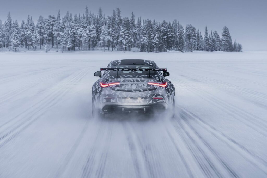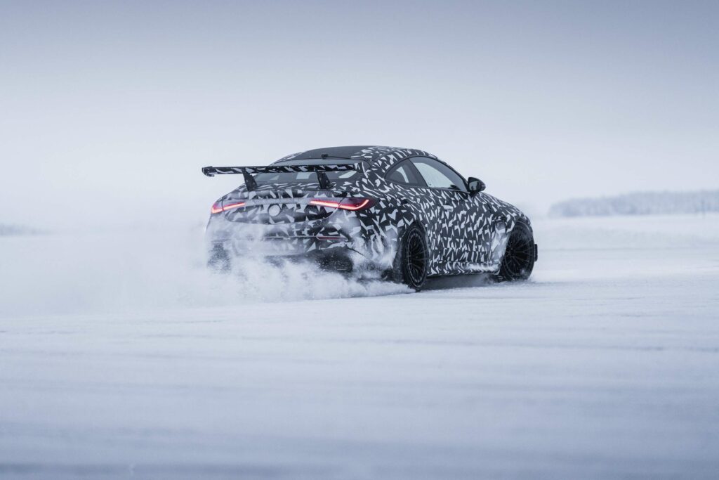 Osservando il prototipo impegnato nei test artici, emergono dettagli che richiamano le soluzioni ingegneristiche tipiche dei modelli “Black Series”. La vettura presenta una carreggiata anteriore allargata e un’altezza da terra ridotta rispetto alla versione standard. L’estetica, seppur ancora camuffata, lascia trasparire una chiara vocazione per la pista:
