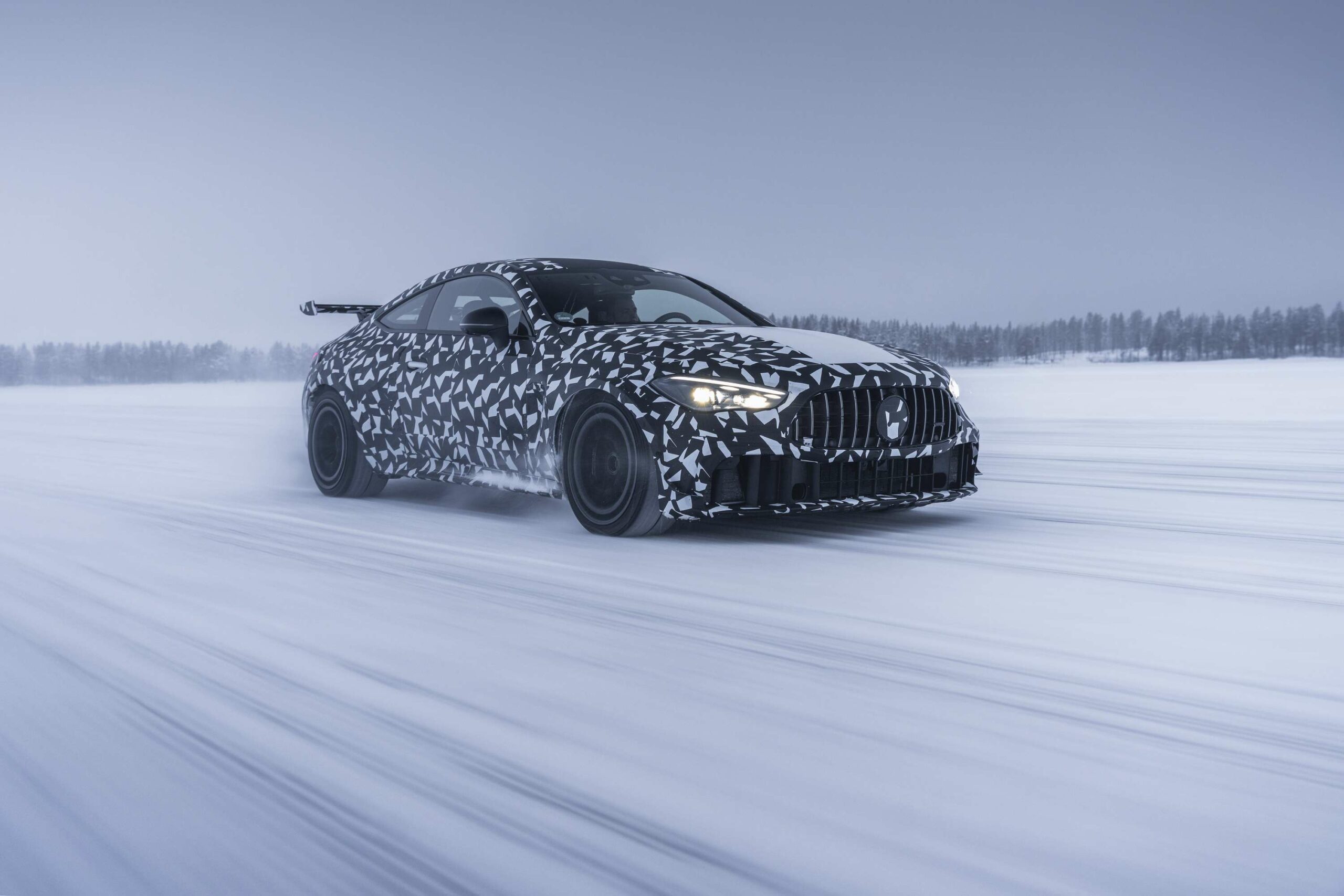 Osservando il prototipo impegnato nei test artici, emergono dettagli che richiamano le soluzioni ingegneristiche tipiche dei modelli “Black Series”. La vettura presenta una carreggiata anteriore allargata e un’altezza da terra ridotta rispetto alla versione standard. L’estetica, seppur ancora camuffata, lascia trasparire una chiara vocazione per la pista: