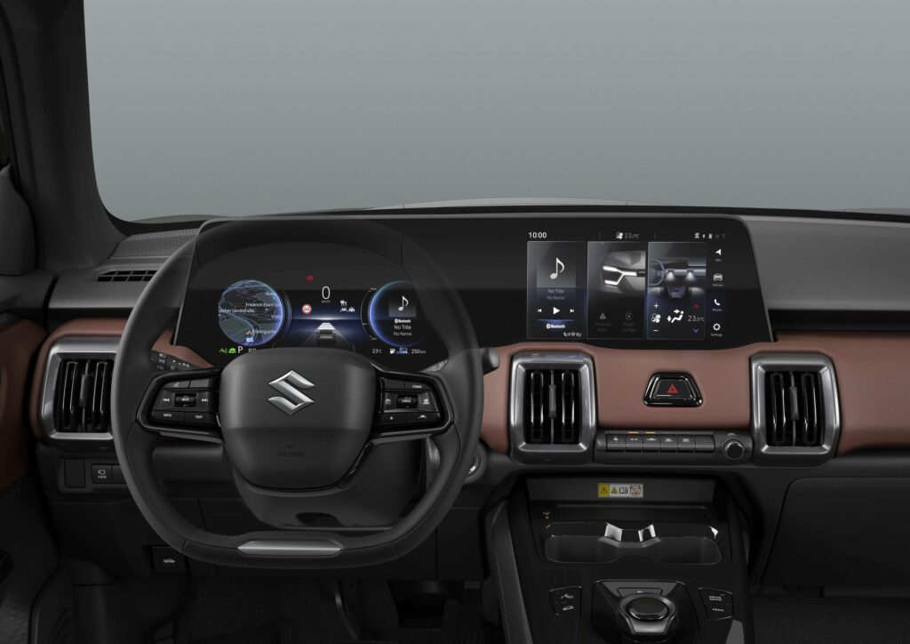 Il sistema a quattro ruote motrici Allgrip-e rappresenta l’evoluzione elettrica dell’esperienza 4×4 di Suzuki. I due motori indipendenti consentono una gestione estremamente rapida e precisa della trazione. Questa configurazione include la modalità Trail, studiata appositamente per i fondi a scarsa aderenza: simulando l’azione di un differenziale a slittamento limitato, il sistema frena la ruota che perde aderenza trasferendo istantaneamente la coppia motrice al pneumatico opposto, garantendo così fluidità in uscita dagli ostacoli.