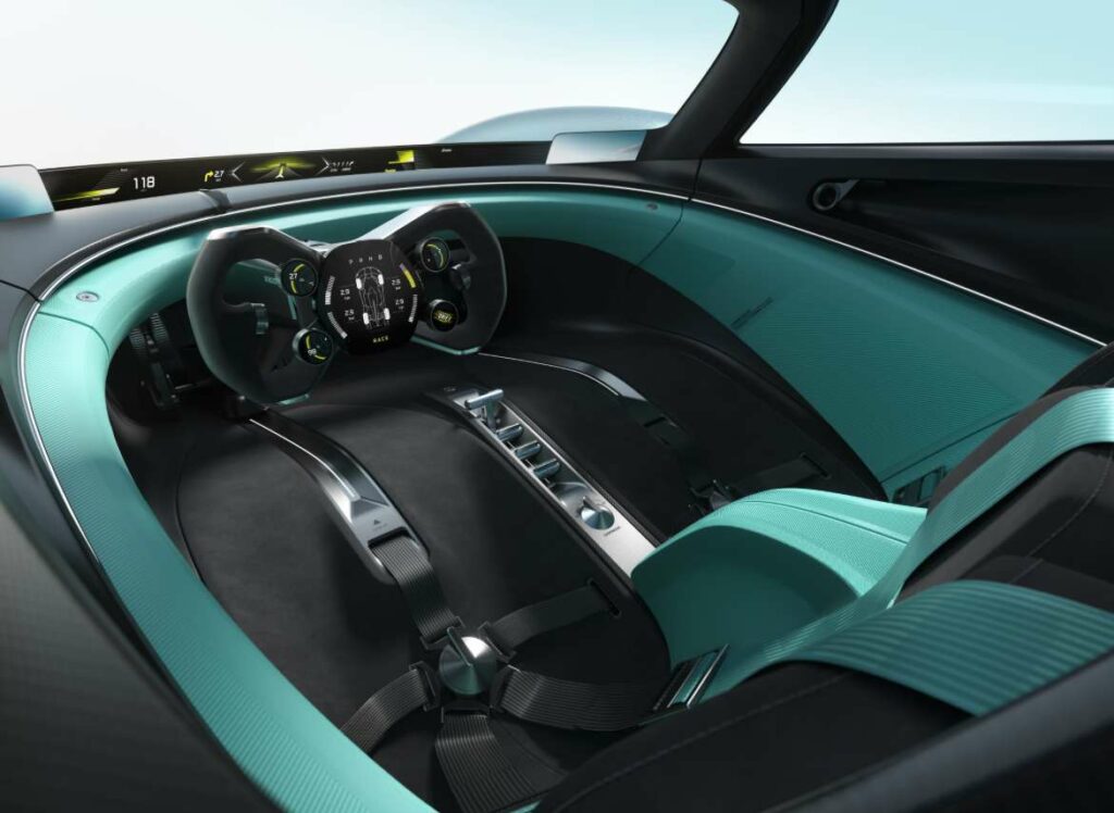 Nonostante le prestazioni da capogiro e l’indole corsaiola, gli interni introducono una filosofia inaspettata chiamata “Sofa Racer“. Abbandonando l’ambiente angusto tipico delle vetture da 1900 cavalli, l’abitacolo è progettato come un anello continuo che avvolge il pilota. I rivestimenti in tessuto naturale, lavorati con tecniche di maglieria 3D mutuate dall’abbigliamento sportivo, offrono al contempo supporto per la guida in pista e traspirabilità.